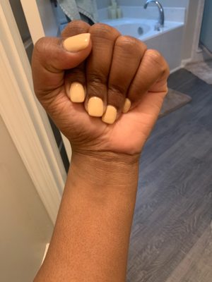 I just paid $90 for a gel mani and pedi and the polish was almost see through. The tech cut my nails too short and also painted them like a kindergartner around my nail bed. Pedi was the same. Don't w